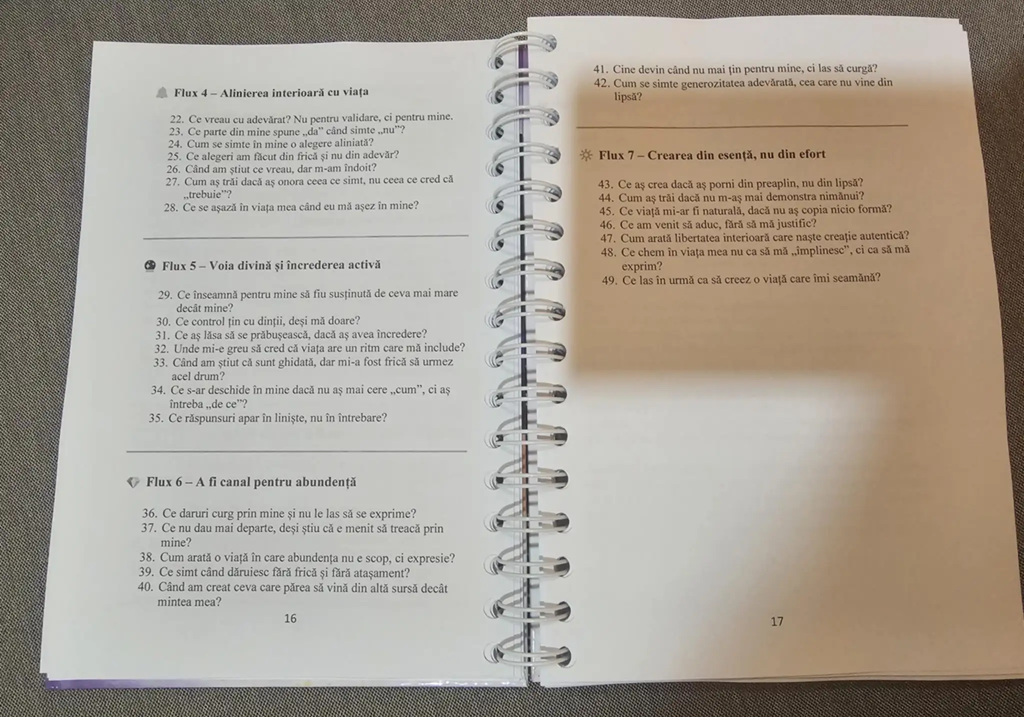 - 49 de teme de introspecție împărțite în 7 fluxuri interioare