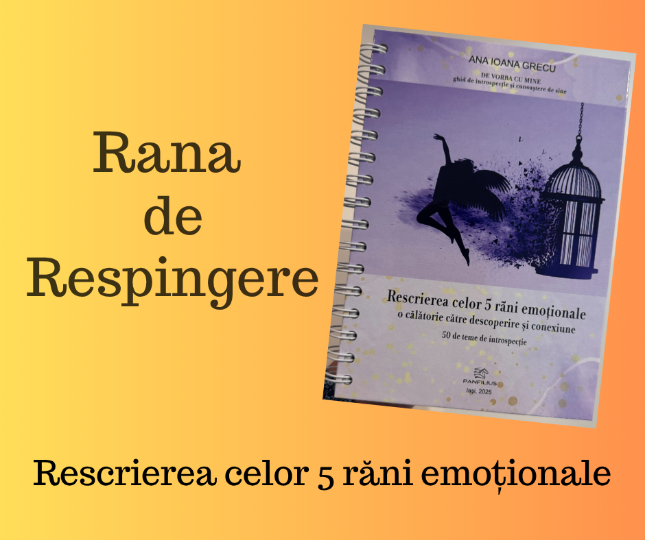În jurnalul Rescrierea celor 5 răni emoționale, rana de respingere este abordată în profunzime, cu blândețe, dar și cu claritate, printr-un set de 10 teme de introspecție care îți oferă ocazia să te uiți direct către ceea ce ai evitat sau poate nici n-ai știut că porți în tine.